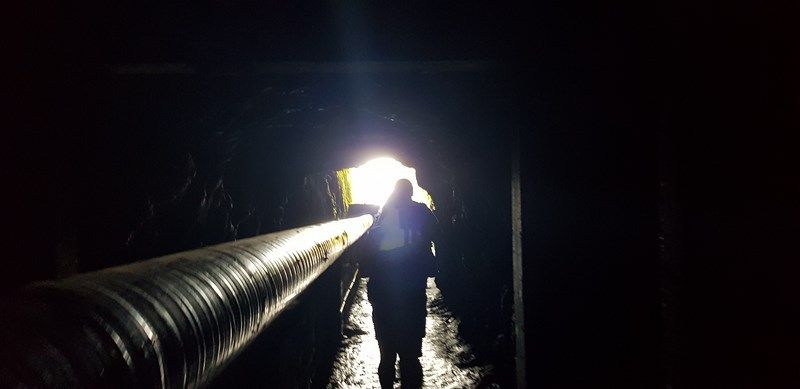 Nous avons fait plus de 12 kms et l'arrivée se fait en traversant un tunnel, construit en 1700... 900 mètres dans le noir (notre guide nous donne des frontales pour le traverser), et pas mécontents d'en voir le bout…